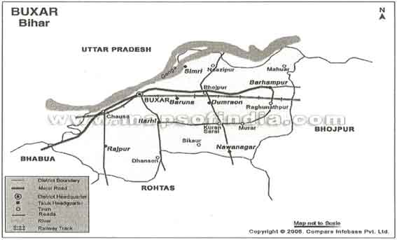 Buxar district is located in 25o 32'51.10”Nand 83o58'33.61” E. The district, Buxar has two subdivisions, 11 blocks, 291 panchayats and 1134 villages. It covers an area of 1620 Km2 and a population of 14.02 lakh (2011 census). Dumraon and Buxar blocks have sizeable urban population while rest all blocks has only rural population. Males comprise 53 % of the population while females comprise the rest. The average literacy is 72%. Seventy seven percent males and 59% females are literate. Situated on the brink of the holy river Ganges, Buxar is the second Benares.